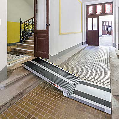 Unsere Praxis liegt im Erdgeschoss und ist nahezu barrierefrei. Für Rollstuhlfahrer*innen bieten wir eine mobile Rohlstuhlrampe zur Praxis an.